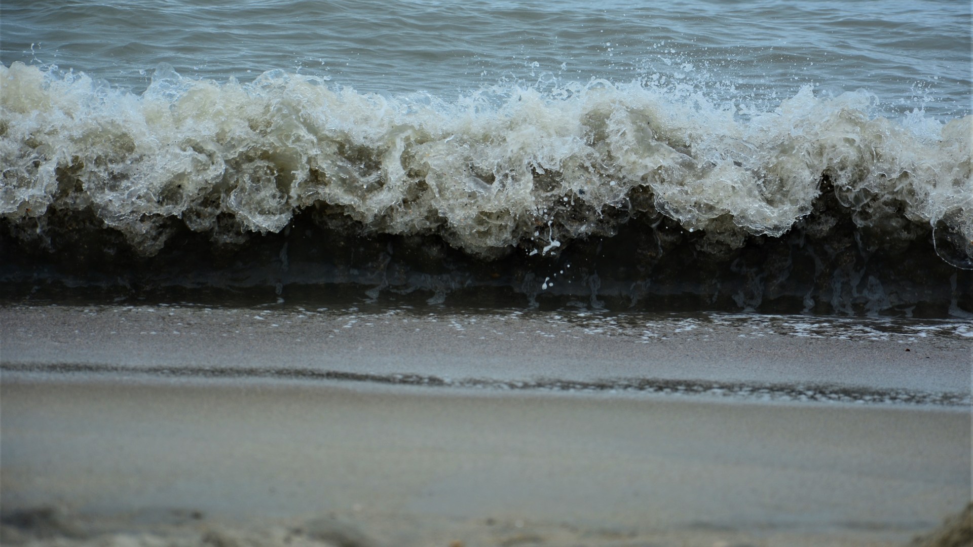 Photo – This is a six-inch Atlantic Ocean wave breaking on the beach at Tybee Island, Georga.