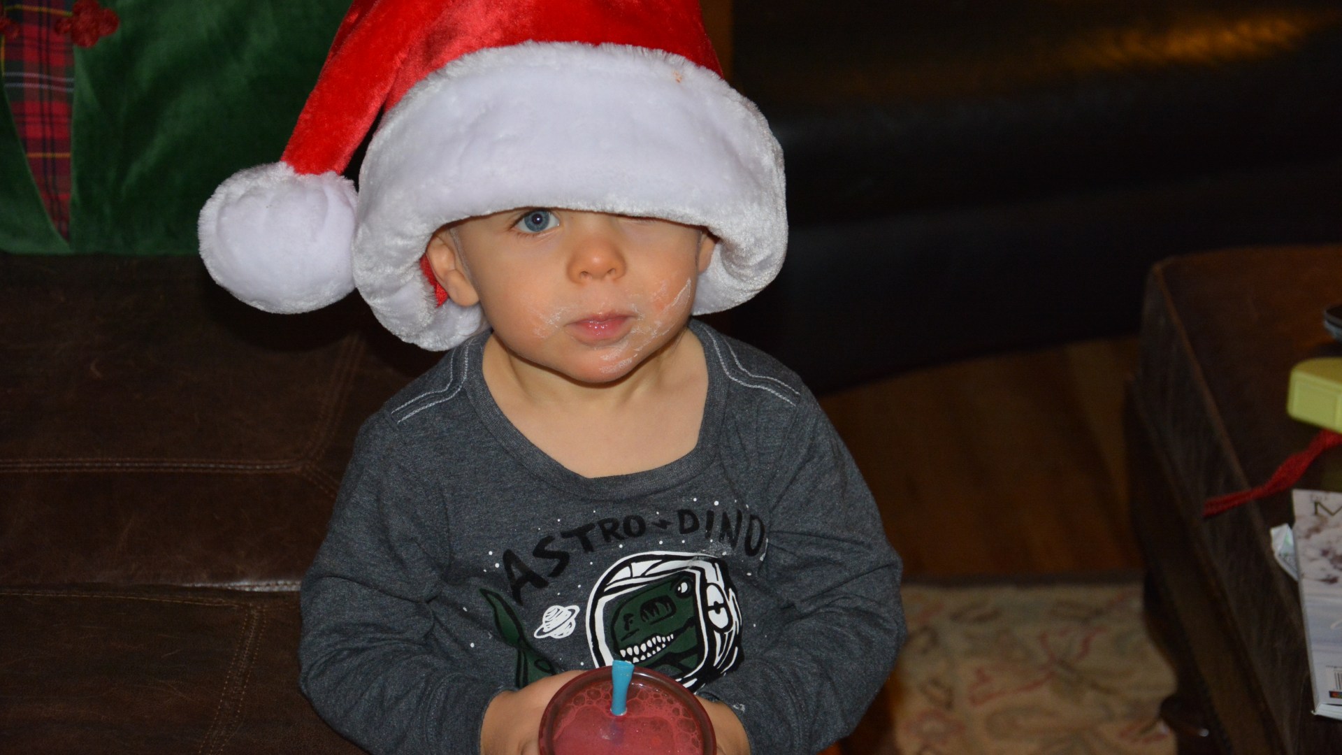 Photo – Christmas at Marmie’s house, a cup of chocolate milk, and a Santa hat, can life be any better?