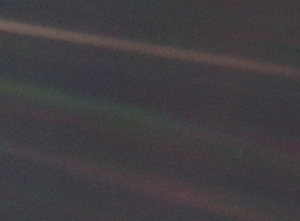 The original picture is composed of 640,000 pixels. Of those, the blue dot is just 0.12 of a shingle pixel. Voyager 1 was traveling at 40,000 miles an hour on February 14, 1990.