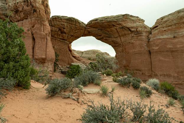 There were very few other sightseers on the road. Stopping on the side of the road to set up and capture my picture was not a problem.  At the Sand Dune Arch, I was doing my photographer impersonation when a car slowly rolled to a stop beside me. The windows were down, and the mid-forties couple asked me, “Where are the arches?”